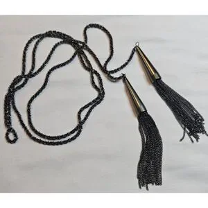 Kendra Scott Phara Lariat Necklace Gunmetal Tassel Multi Strand Long 48.5 Inch