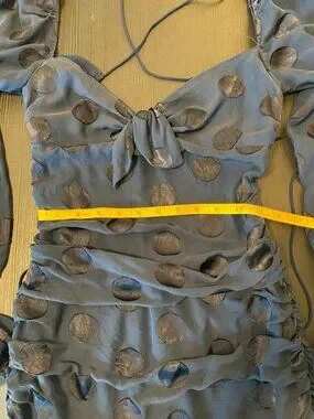 Features: backless, bust tie, ruching, flowing sleeves