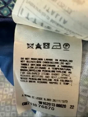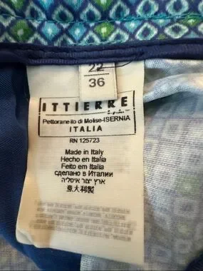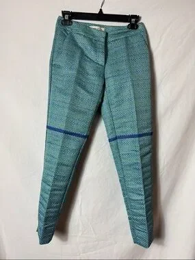 Slim tapered pants with a repeating geometric diamond print. Vibrant blue and green tones create a fresh look. Clean waistband with subtle label detail. Easy to style for smart-casual outfits.