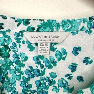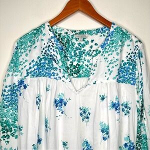 Lucky Brand Blue Green and White Relaxed Floral Tunic Top Size 1X