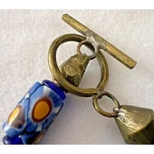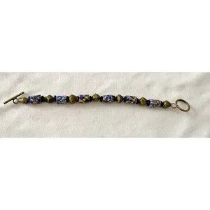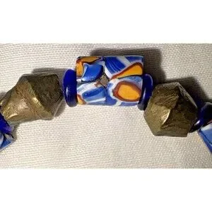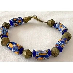 Bracelet Venetian Millefiori Glass African Trade Beads Yellow Blue Cylindrical