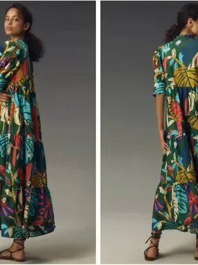 Farm Rio Short-Sleeve Printed Maxi Shirt Dress (XL)