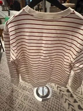 perfectwhitetee Cream and Red Striped Crewneck Sweatshirt