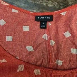 TORRID sz 6 Babydoll Top Womens Red Geometric Square Pleated Gauze Scoop Neck