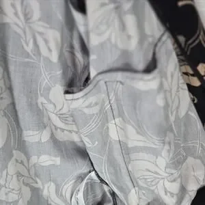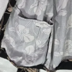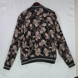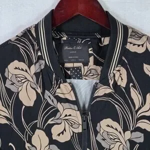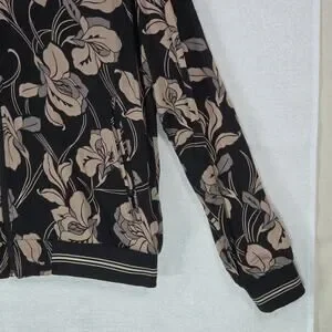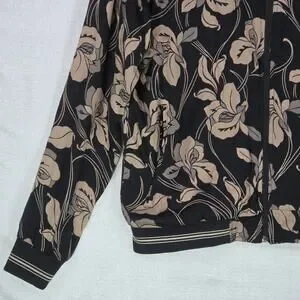 Porter & Ash Floral Bomber Jacket Black Tan Hibiscus FullZip Inner Pockets Large
