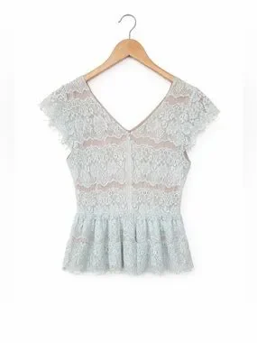 Anthropologie Maeve Mint Lace Peplum Top Size Large Cottagecore Romantic
