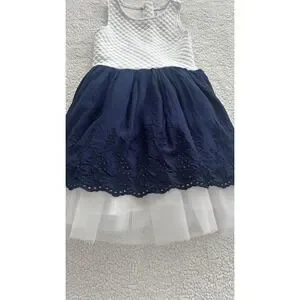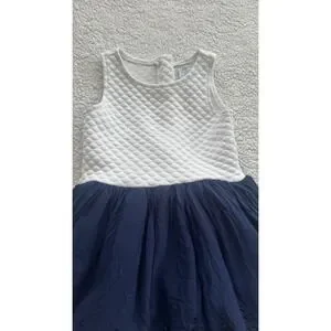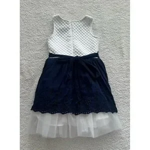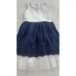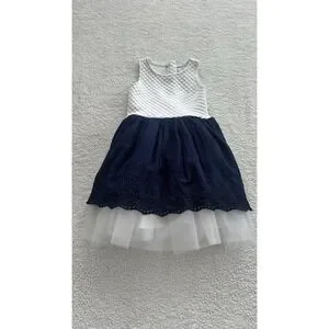 Girl's Blue & White Tulle Dress Fancy Bow Formal Size 5 Sleeveless Flower Party