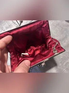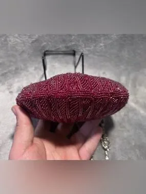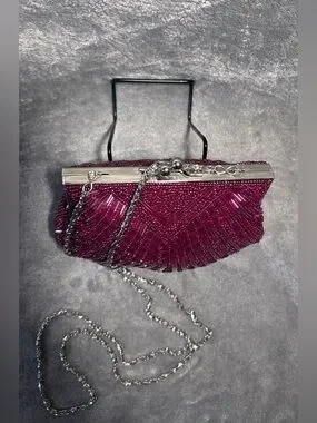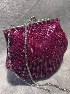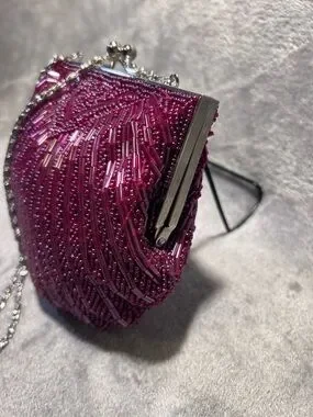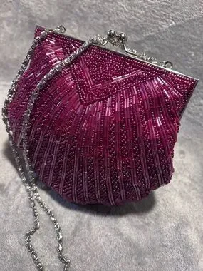 Retro Mini Purple Beaded Shell Bag on Silver Chain