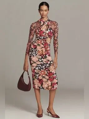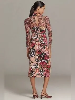 Anthropologie | Long-Sleeve Halter Mesh Midi Dress | Size XL | NWT