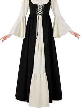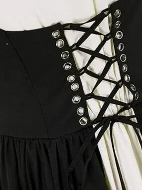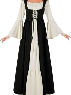 Features: Medieval Victorian women's dress, flared sleeve dress, party dress off the shoulder, suspender, flared sleeve, chest lace-up dress