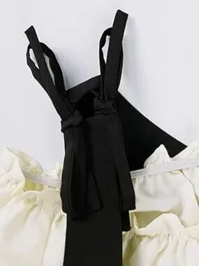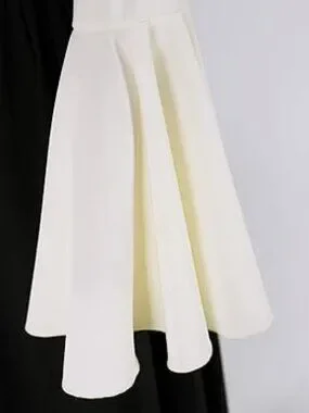 The dress is made of two colors of fabric, which looks elegant and clean. The combination of one-shoulder style and shoulder belt style makes it very beautiful to wear.