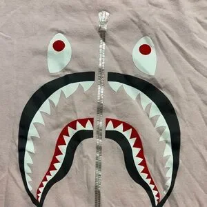 Bape Pink Shark Tee with Silver Zip and Red/Black Graphic