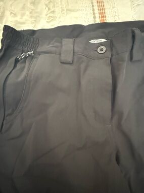 Sleek black track pants from Mountain Warehouse. Elastic waistband with button detail. Side zip pocket for secure storage. Straight leg with subtle seam accents. Lightweight, versatile for daily wear.
