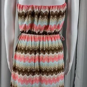 Rue 21 Women's Coral & Brown Geo Stripe Strapless Maxi Dress Size L