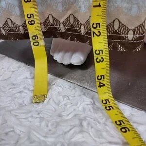 • Please see photos for measurements (in inches). (Note, two tape measures, one from shoulder to the floor and one from the tip of the dress to the floor.)