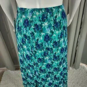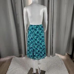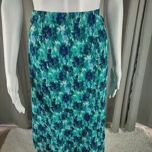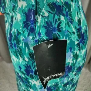 Jones Wear Women's Blue, Green Floral Side Zip Lined A-Line Skirt Size 12 (NWT)