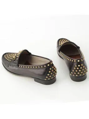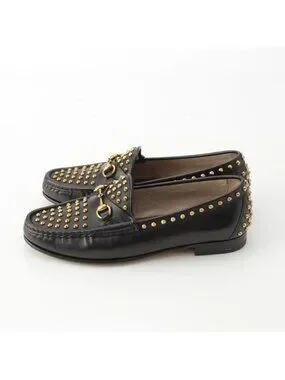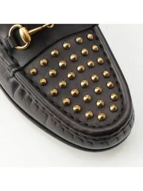 Gucci Horsebit Studded Loafers Black Gold 36.5