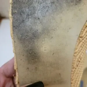 Raffia is strips of palm and is a natural fiber that forms to your foot, but it is not stretchy and it's not scratchy. Raffia shoes are a work of art, each handwoven over 1-2 days. After the upper is woven, the raffia upper part of the shoe is placed on a hard flat wooden sole with an upcycled leather insole. Stylish and comfortable tan slip-on shoes perfect for any casual outing. EUC. Size 8.