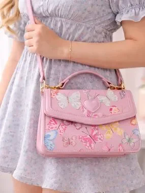 Super trendy coquette/Y2K aesthetic with colorful butterfly print and signature heart clasp. Lightweight, versatile, and perfect for everyday or dressing up a cute outfit.