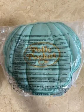 Polly Pocket mint crossbody bag with a playful shell silhouette. Lightweight and easy to carry for everyday use. Mint color adds a fresh, fun touch to outfits. Features a secure zip and a subtle gold logo plaque for a polished look.