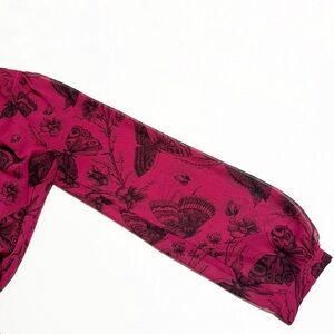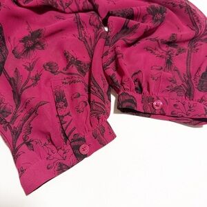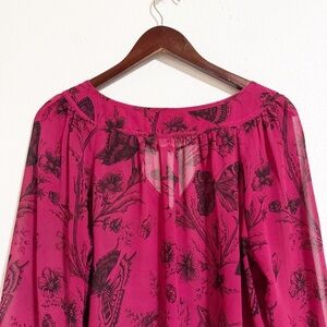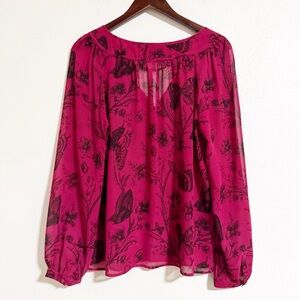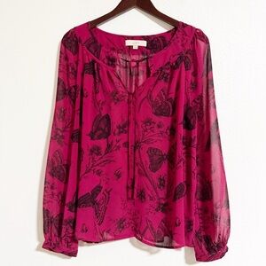 Loft Butterfly Floral Tie Neck Chiffon Blouse