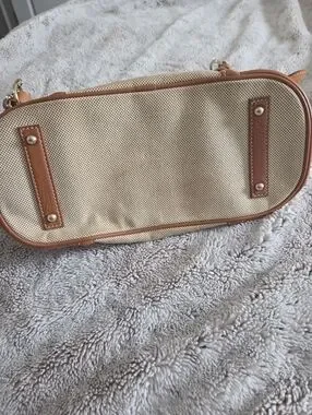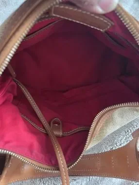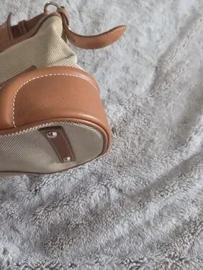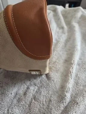 Dooney & Bourke Tan Canvas and Brown Leather Shoulder Bag
