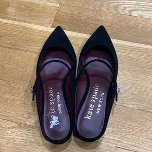 Absolutely gorgeous Kate Spade Meg black Womens shoes.Size 8.It’s a paper sticker on left shoe.It’s will easily get off .