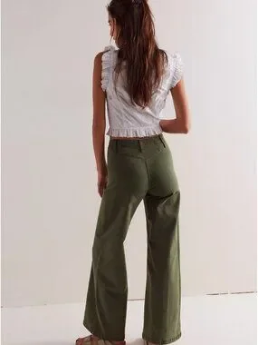 Free People Libre Wide Leg Pants – Olive Green High Rise (Size 27)