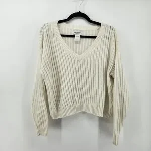 Arizona Jean Co Women's Knit Sweater White V Neck Long Sleeve Cropped Size L