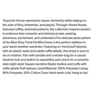 Hyacinth House Hyacinth House Blue Ditsy Floral Pai Mini Dress NWT Size Medium
