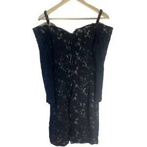 Susan Roselli For Vijack Black Lace Bodycon Long Sleeve Dress Sz 10