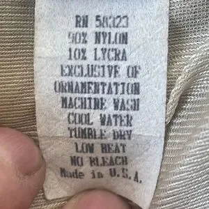 This measures 19" laid flat at underarms, waist is 16" and length is approximately 16". It can be worn on or off shoulder, and the body of the dress is lined. In very good pre-owned condition. Normal wear and tear noted, but no flaws or damage. Last photo shows some missing stitching on the inside lining close to shoulder area. Please review pictures and feel free to ask any questions or for more pictures prior to purchasing.