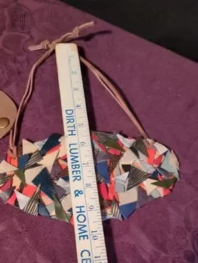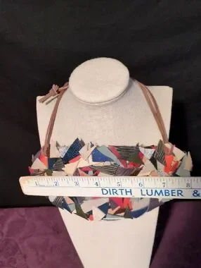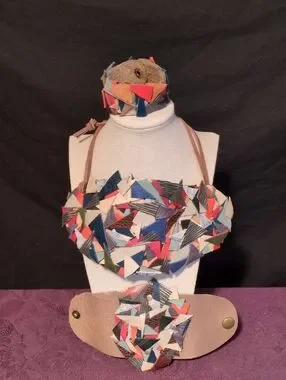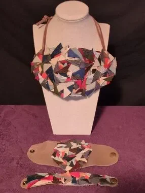 Artisan Handmade Patchwork Leather Necklace and 2 Bracelets Set Multicolored