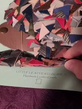 Handmade using sustainable genuine leather castoffs from the fashion and upholstery industries. Some imperfections in the leather due to variabilities with animal hides.