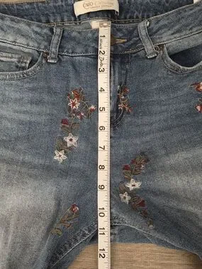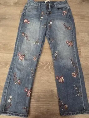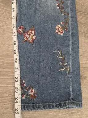 Add a touch of bohemian charm to your denim collection with these beautiful limited edition jeans from Cato. Featuring delicate, multi-colored floral embroidery throughout the front, these mid-rise jeans offer a unique, romantic aesthetic that pairs perfectly with boots or simple flats.