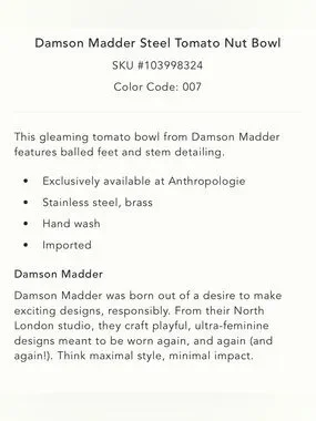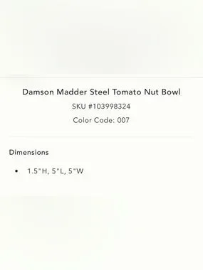 Anthropologie Damson Madder Steel Tomato Nut Bowl NEW