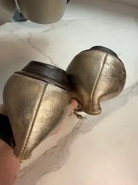 Salvatore Ferragamo Metallic Champagne Ballet Flats with Bow