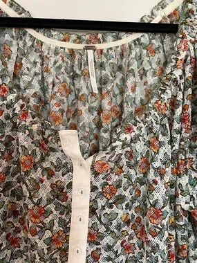 Free People Floral Puff Sleeve Blouse in Cream, Green & Orange