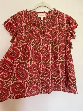 Cleobella Pink and Brown Paisley Ruffled Sleeve Blouse
