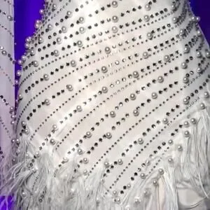 Women Sexy Sparkly Long Sleeve Birthday or Bachelorette Dress Sheer Mesh See Through Pearls Rhinestones.