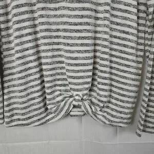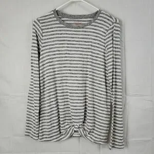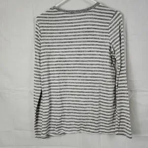 Cat & Jack Womens Gray White Striped Long Sleeve Crew Neck Basic T Shirt Size XL