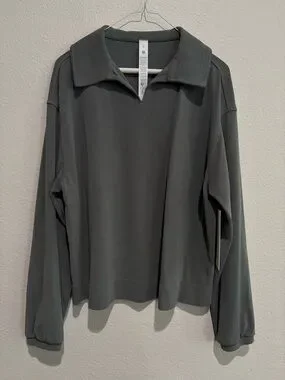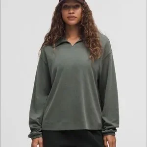 Lululemon Softstreme Pique Oversized Long-Sleeve Polo Shirt Palm Deco SZ S