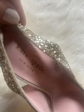 kate spade Glitter Bow Peep-Toe Slingback Heels in Gold