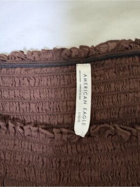 American Eagle Outfitters Brown Smocked Square-Neck Blouse