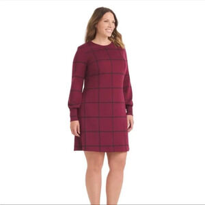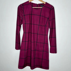 Hutch Anthropologie Merlot Red Plaid Long Sleeve Dress Women’s Small Cabin Chic