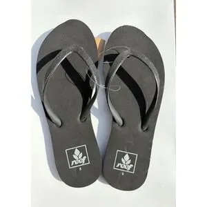 Reef Stargazer Flip Flops Womens 5 Black Glitter Sparkle Thong Sandals New