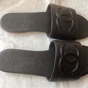 Chanel 2023 Black Lambskin Mules Slides Sandals Size 37 C