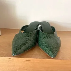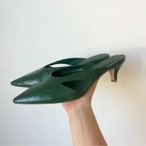 Anthropologie Matisse Cut Out Mule Green Faux Snakeskin Kitten Heels Shoes 10