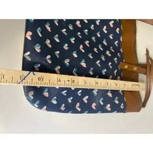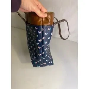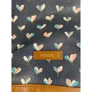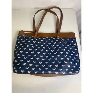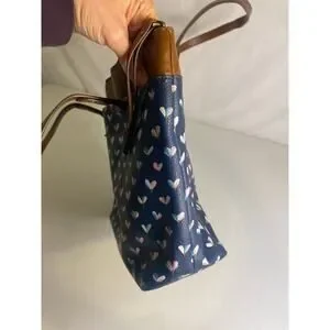 Fossil Anna Blue Heart Large Shoulder Tote Bag Leather Preppy Collegiate