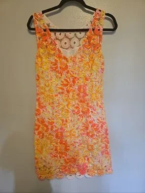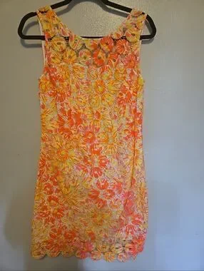 Lilly Pulitzer Resort Dress Sunkissed Bright Yellow Pink Sleeveless Dress 6